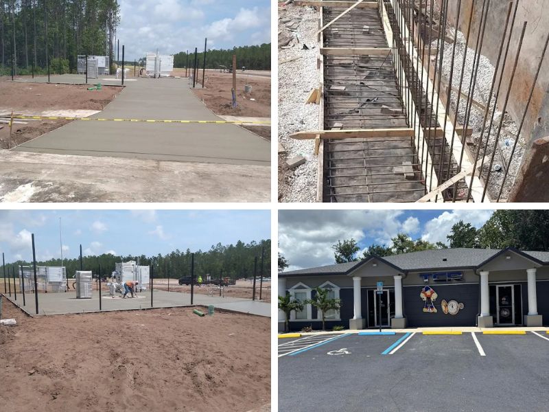 Provides commercial and industrial concrete, restoration, slabs, sidewalks, footings, and structural concrete services in Northeast FL.